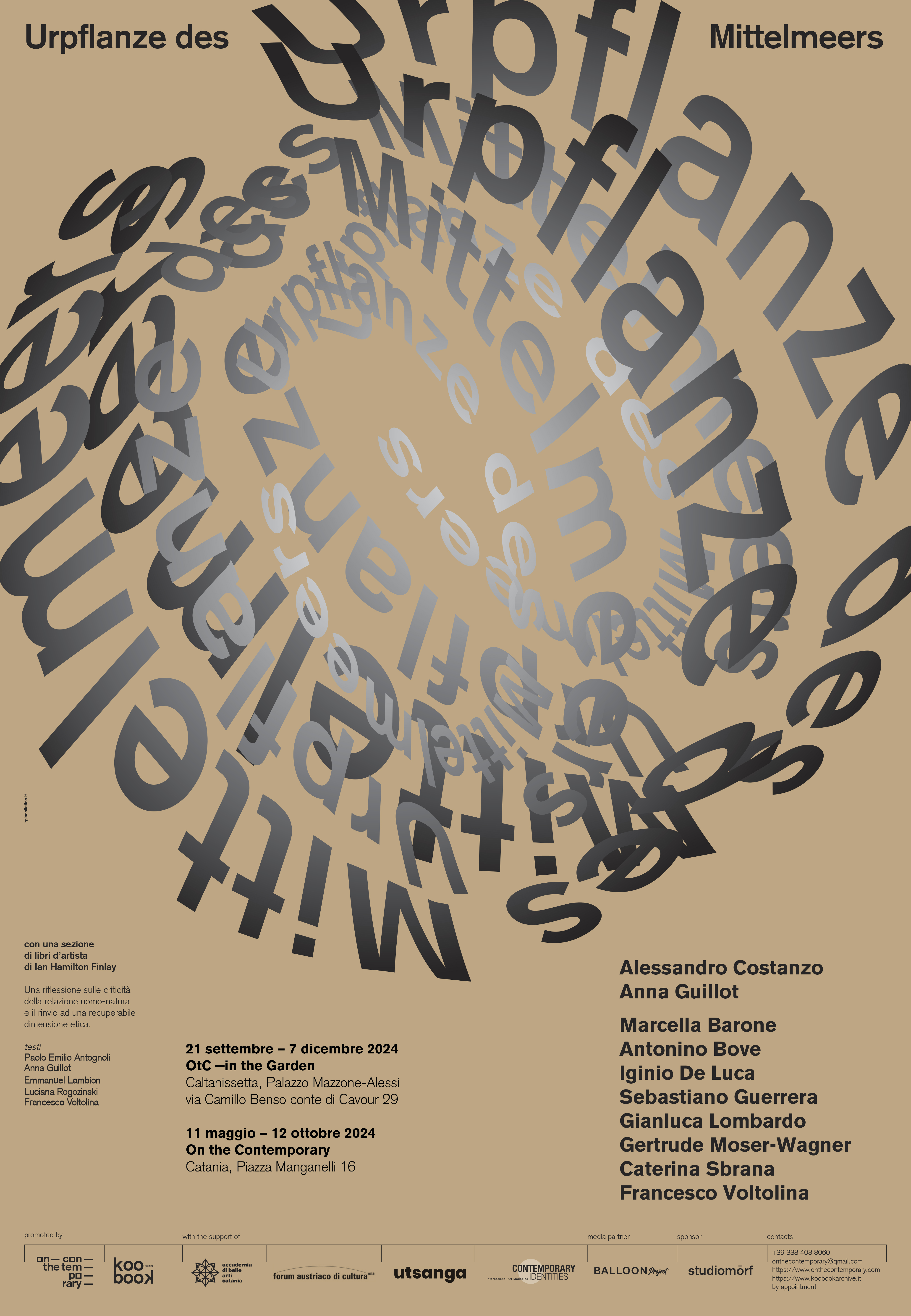 Urpflanze des Mittelmeers —riflessione sulle criticità della relazione uomo-natura e rinvio ad una recuperabile dimensione etica, presso On the Contemporary (OtC) a Catania, è una mostra derivata dal progetto Systema Naturæ realizzato in tre step, nella sede On the Contemporary —in the Garden a Caltanissetta, dove coprotagonista di spazi interni e motivo ispiratore degli interventi è un giardino.
